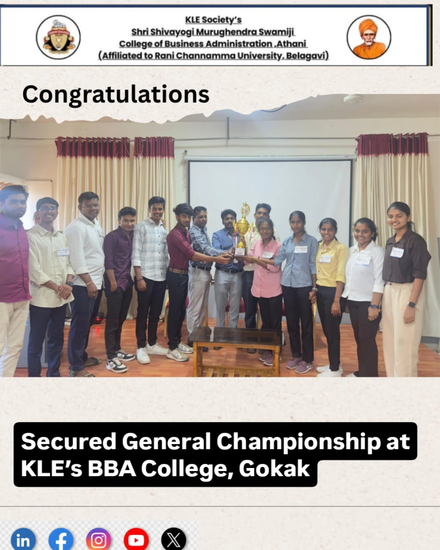 Arthika - Runner up General Championship at KLE's BBA College Nipani